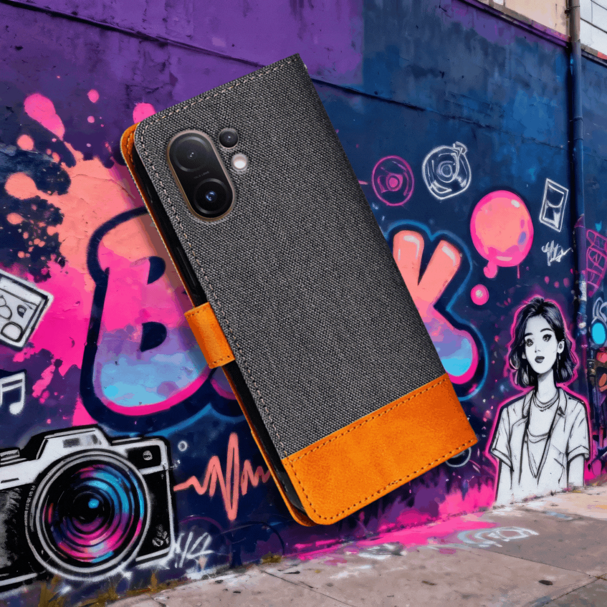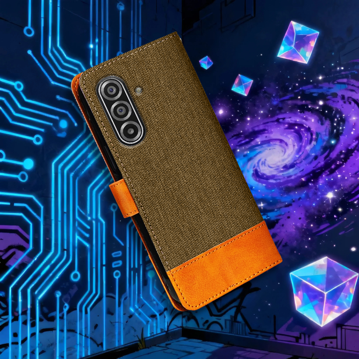 Texture meets polish. Secure snap‑close, kickstand on demand, and a minimal profile built for daily carry.