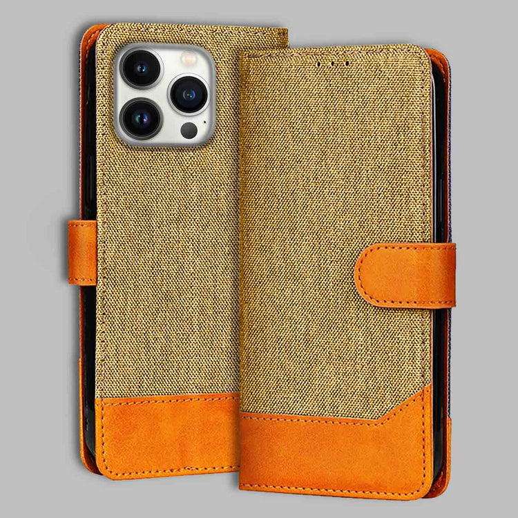 Apple iPhone 13 Pro Dual-Tone Denim & Leather Flip Cover - Light Brown