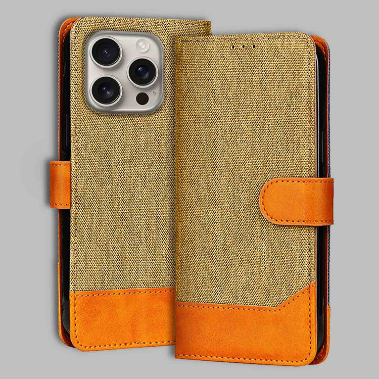 Apple iPhone 16 Pro Dual-Tone Denim & Leather Flip Cover - Light Brown