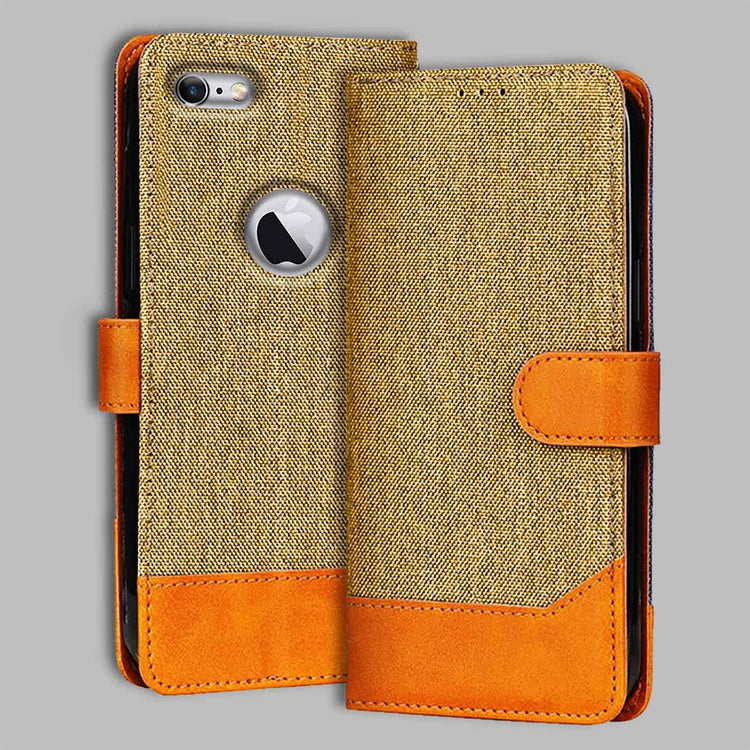 Apple iPhone 6S Dual Color Flip Cover | Denim & Leather - Light Brown