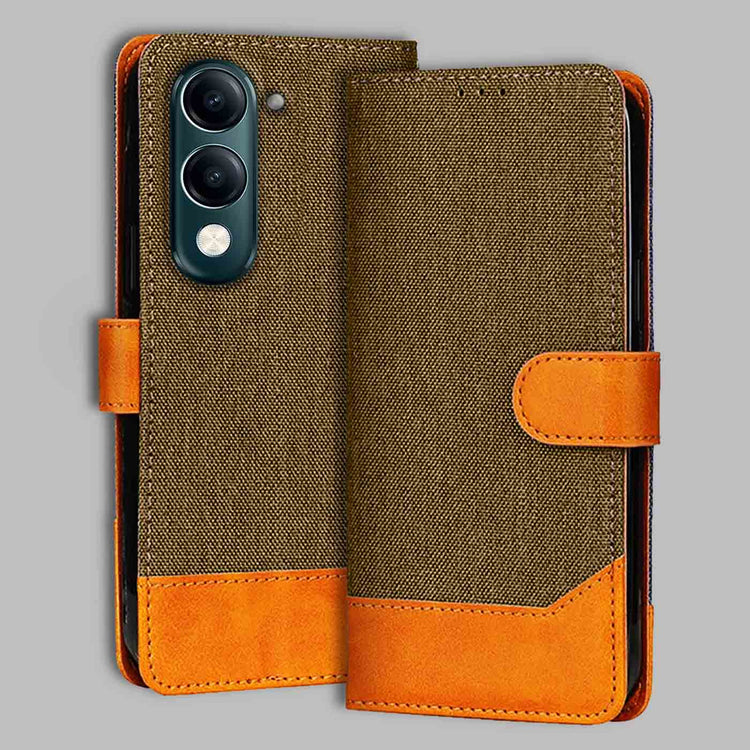 Denim & Leather Flip Case for iQOO Z10 Lite 5G | Stylish Protection - Dark Brown