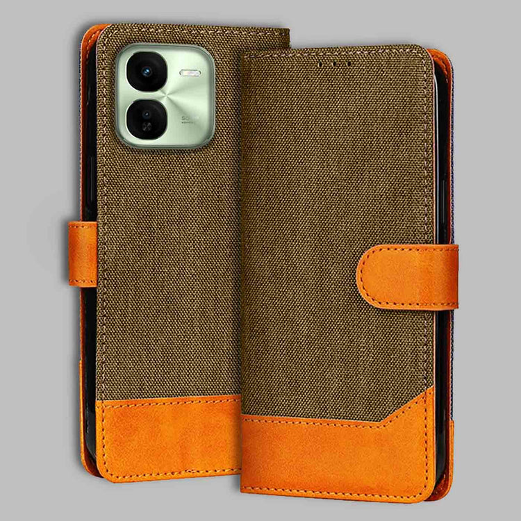 Denim & Leather Flip Case for iQOO Z9X | Stylish Protection - Dark Brown