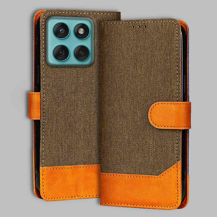 Denim & Leather Flip Case for Moto Edge 60 Fusion | Stylish Protection - Dark Brown