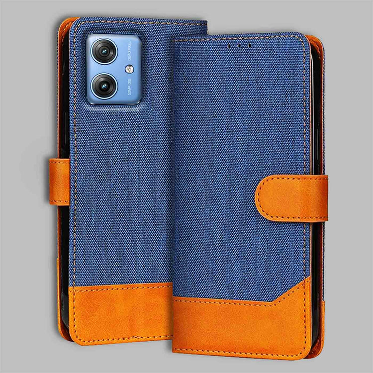 Denim & Leather Flip Case for Moto G54 5G | Stylish Protection - Blue