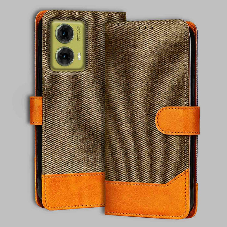 Denim & Leather Flip Case for Moto G85 5G | Stylish Protection - Dark Brown