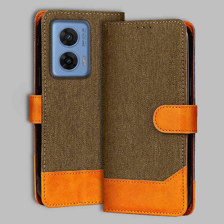Denim & Leather Flip Case for Moto G96 5G | Stylish Protection - Dark Brown