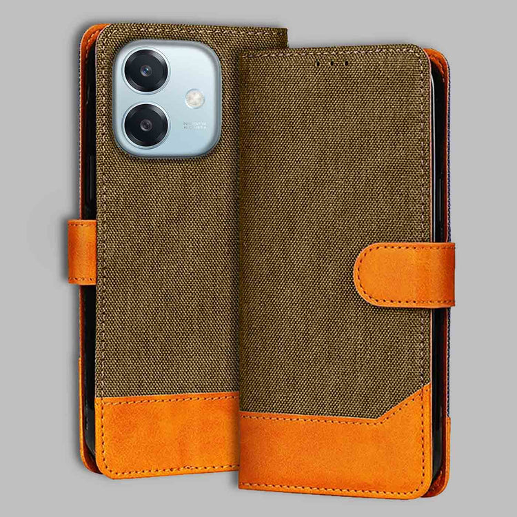 Denim & Leather Flip Case for Oppo A3 5G | Stylish Protection - Dark Brown