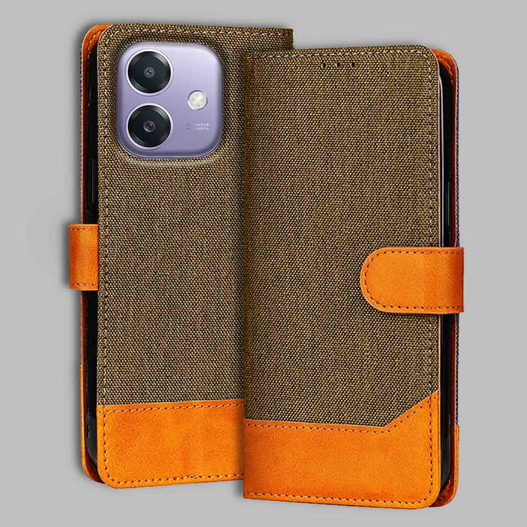 Denim & Leather Flip Case for Oppo A3X 5G | Stylish Protection - Dark Brown