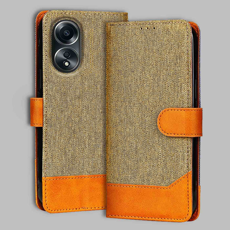 Denim & Leather Flip Case for Oppo A58 5G | Stylish Protection - Light Brown