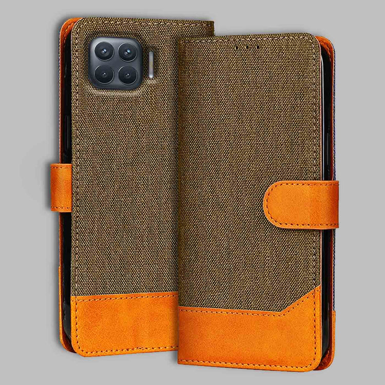 Denim & Leather Flip Case for Oppo F17 Pro | Stylish Protection - Dark Brown