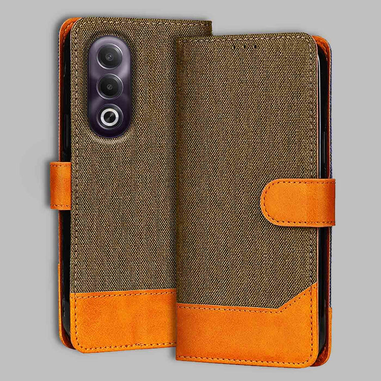 Denim & Leather Flip Case for Oppo K12X 5G | Stylish Protection - Dark Brown