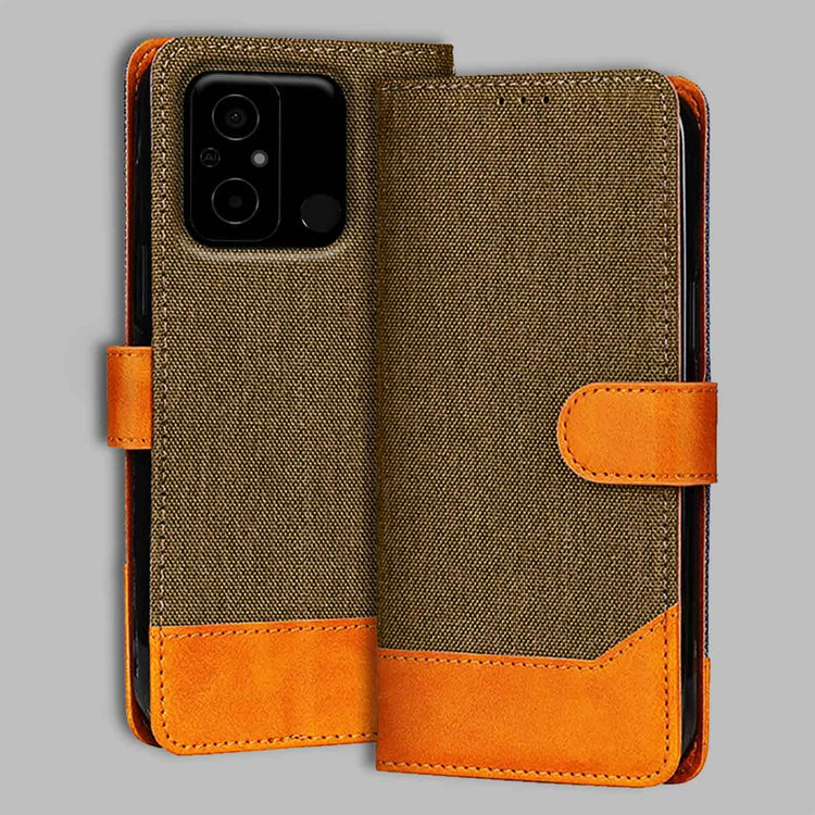Denim & Leather Flip Case for Poco C55 | Stylish Protection - Dark Brown