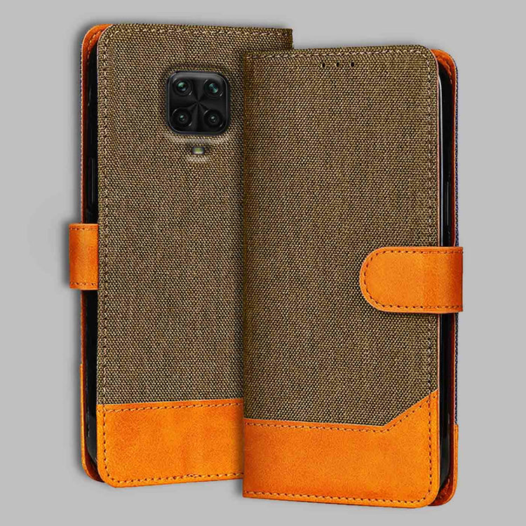 Denim & Leather Flip Case for Poco M2 Pro | Stylish Protection - Dark Brown