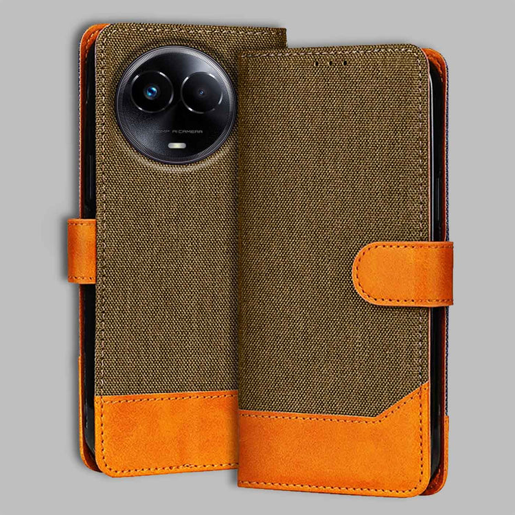 Denim & Leather Flip Case for Realme 11 5G | Stylish Protection - Dark Brown