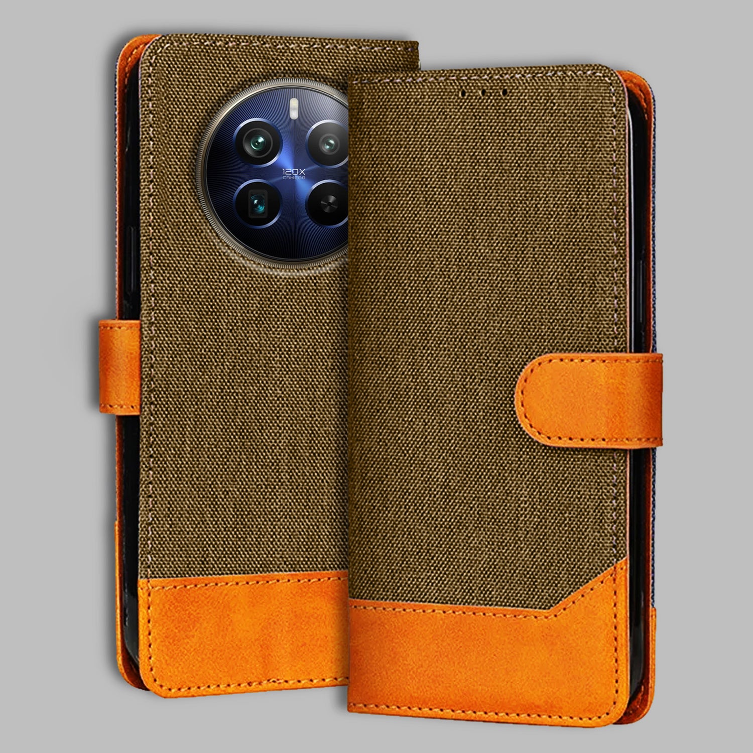 Denim & Leather Flip Case for Realme 12 Pro 5G | Stylish Protection - Dark Brown