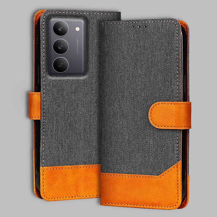 Denim & Leather Flip Case for Realme 14X 5G | Stylish Protection - Grey