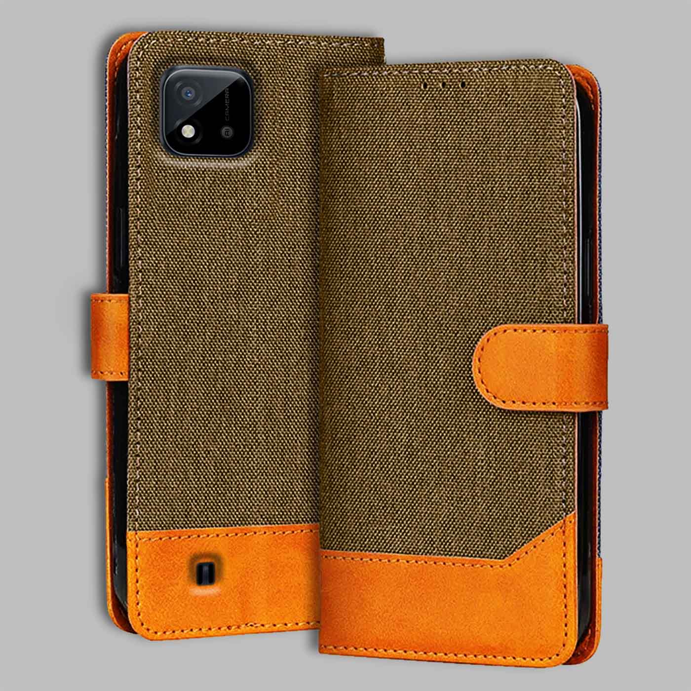 Denim & Leather Flip Case for Realme C11 2021 | Stylish Protection - Dark Brown