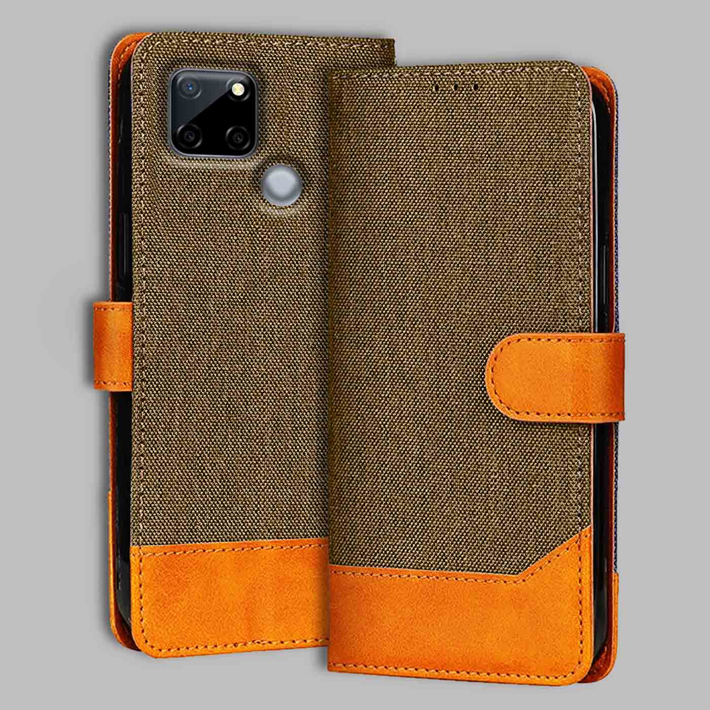 Denim & Leather Flip Case for Realme C12 | Stylish Protection - Dark Brown