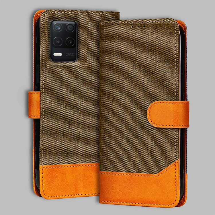 Denim & Leather Flip Case for Realme Narzo 30 5G | Stylish Protection - Dark Brown