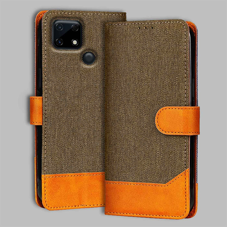 Denim & Leather Flip Case for Realme Narzo 30A | Stylish Protection - Dark Brown