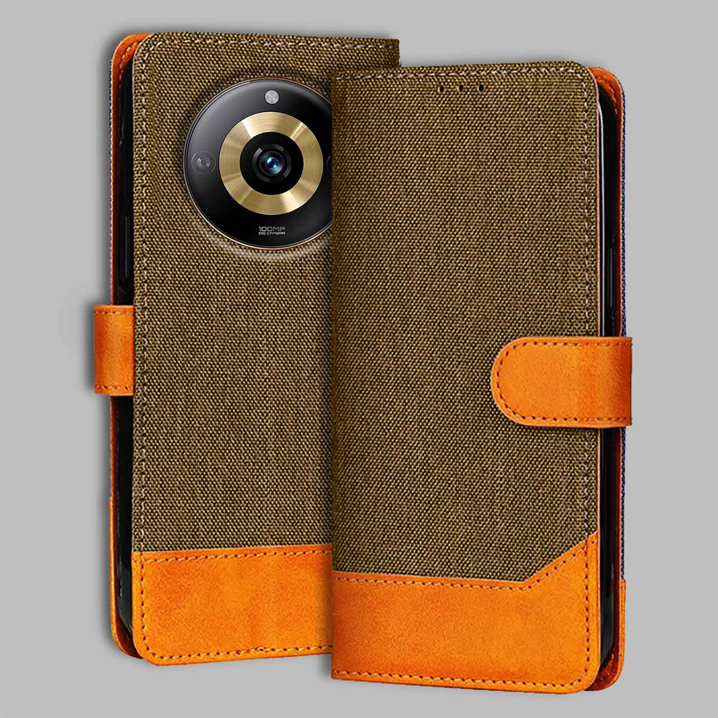 Denim & Leather Flip Case for Realme Narzo 60 Pro 5G | Stylish Protection - Dark Brown