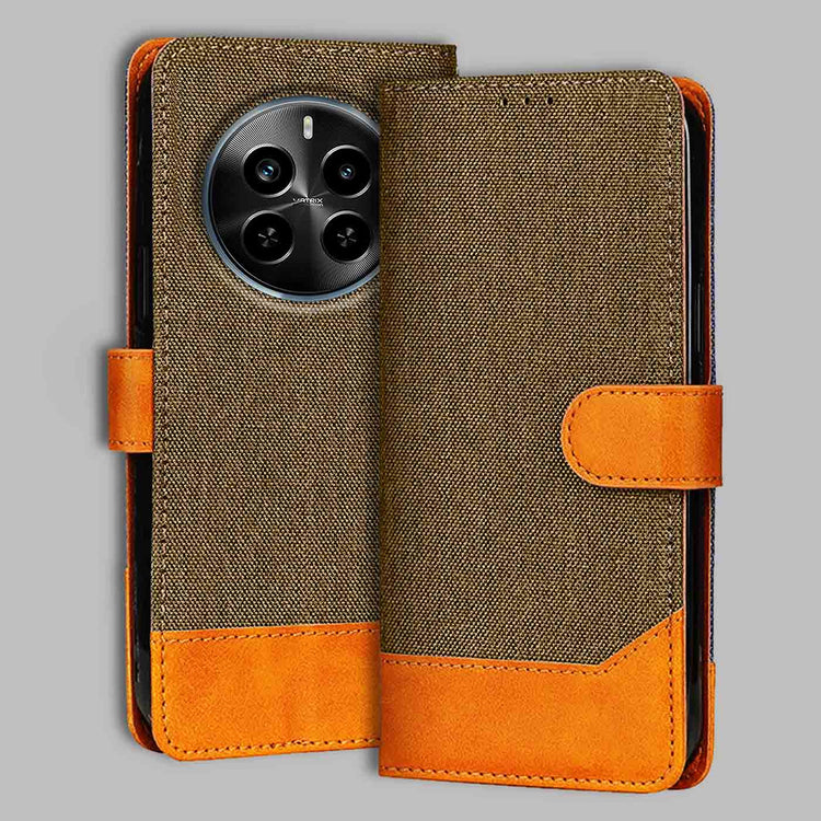 Denim & Leather Flip Case for Realme P1 Pro 5G | Stylish Protection - Dark Brown