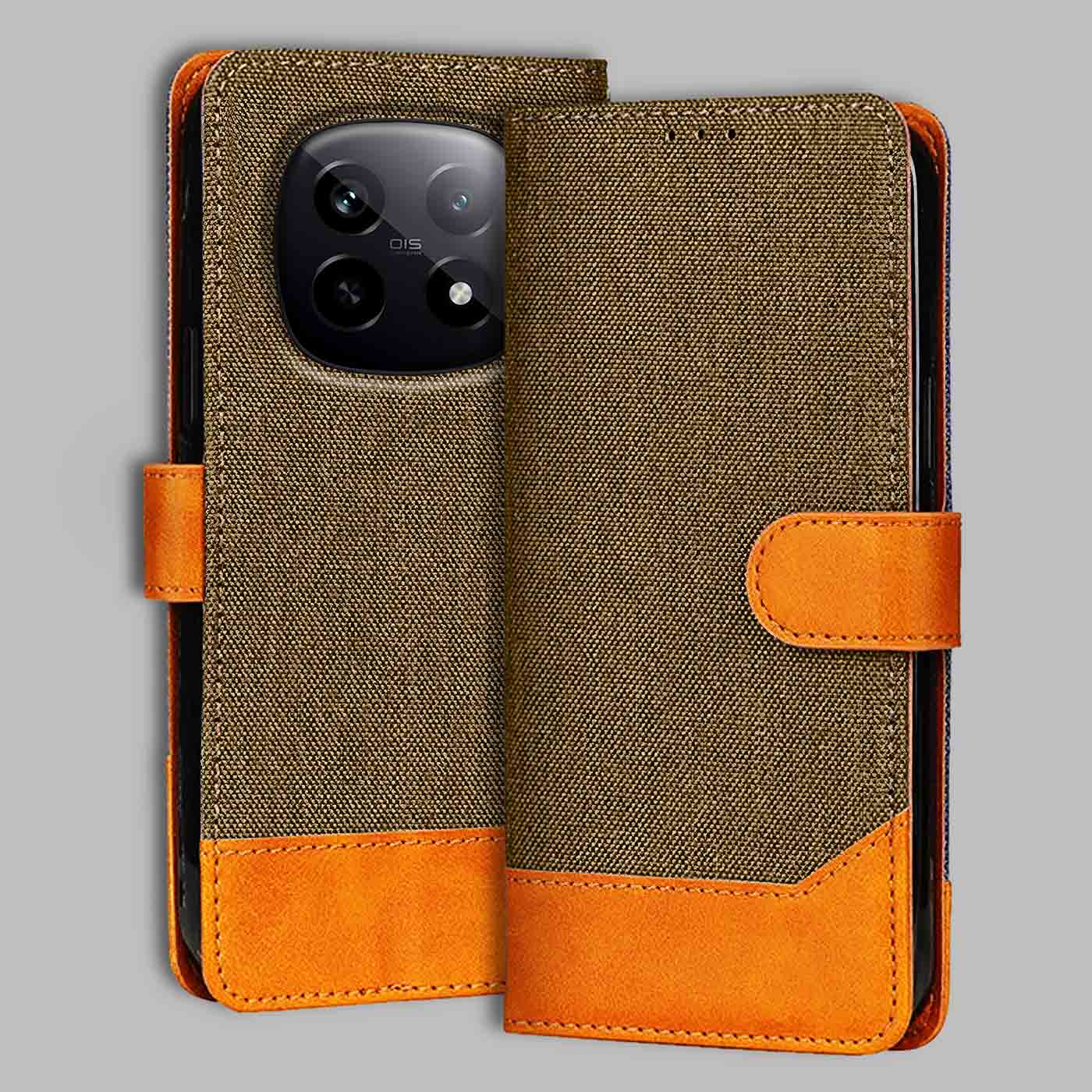 Denim & Leather Flip Case for Realme P2 Pro | Stylish Protection - Dark Brown