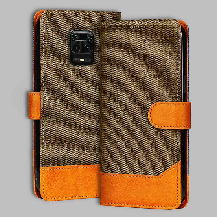 Denim & Leather Flip Case for Redmi Note 9 Pro Max | Stylish Protection - Dark Brown