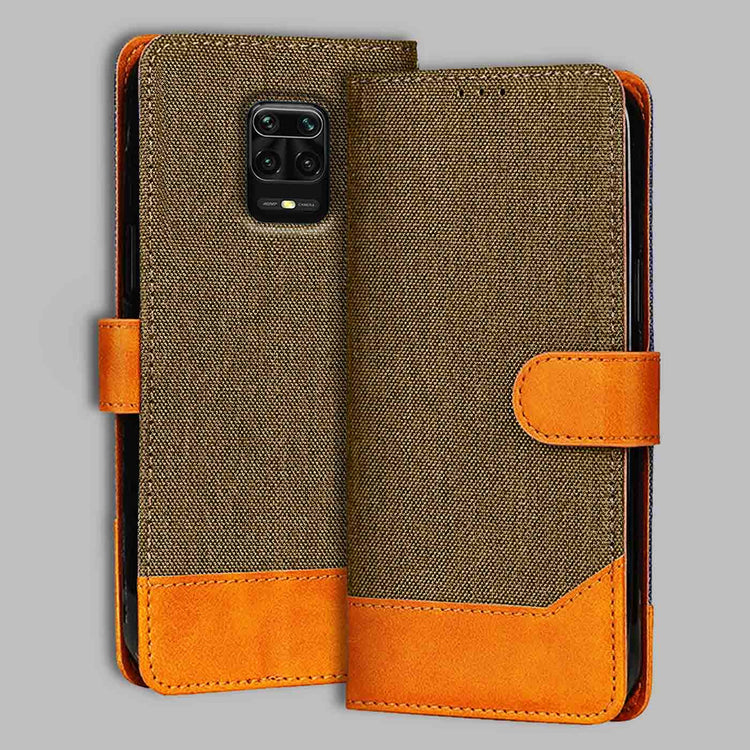 Denim & Leather Flip Case for Redmi Note 9 Pro | Stylish Protection - Dark Brown