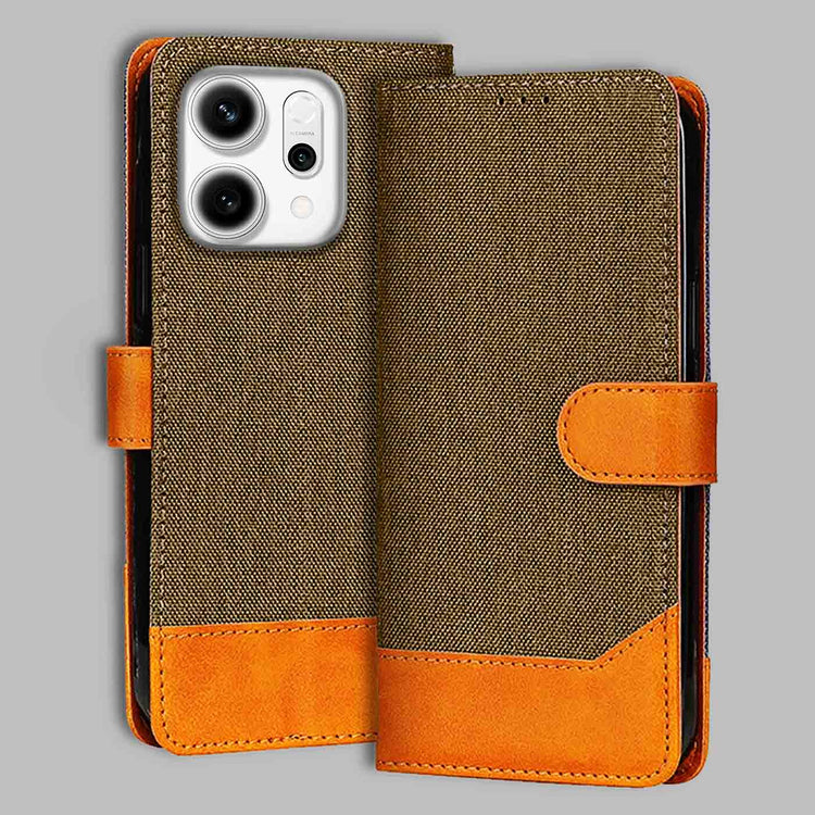 Denim & Leather Flip Case for Reno 14 5G | Stylish Protection - Dark Brown