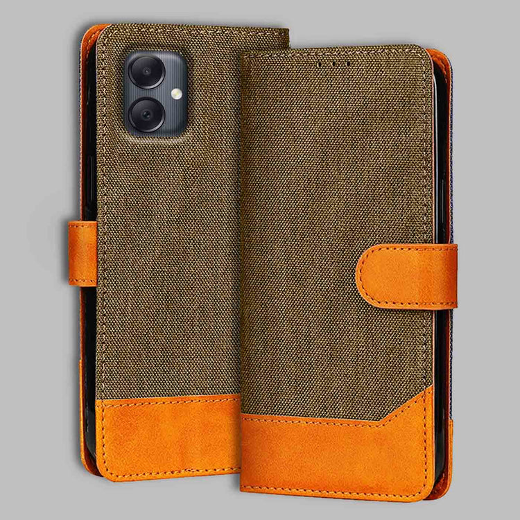 Denim & Leather Flip Case for Samsung A05 | Stylish Protection - Dark Brown