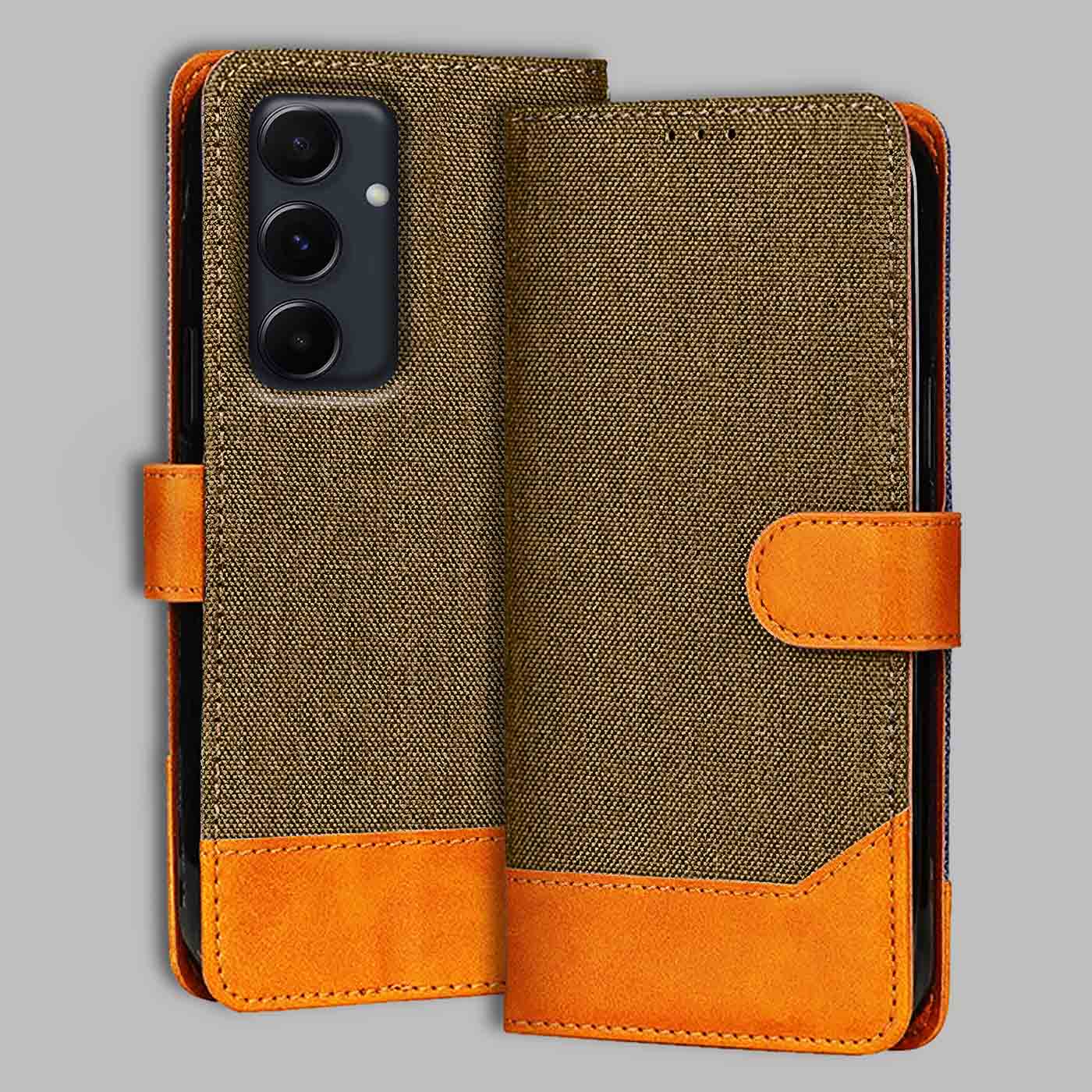 Denim & Leather Flip Case for Samsung A55 5G | Stylish Protection - Dark Brown