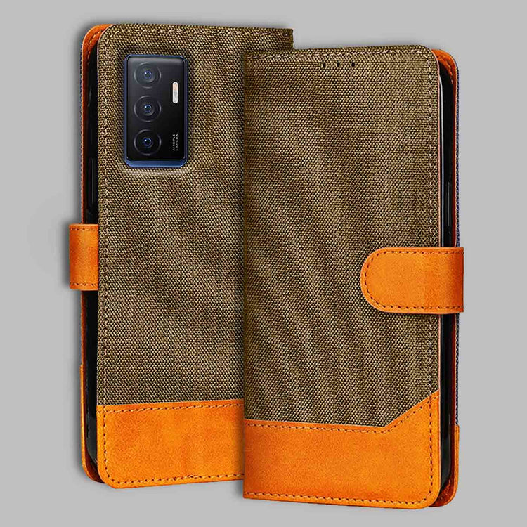 Denim & Leather Flip Case for Vivo V23E | Stylish Protection - Dark Brown