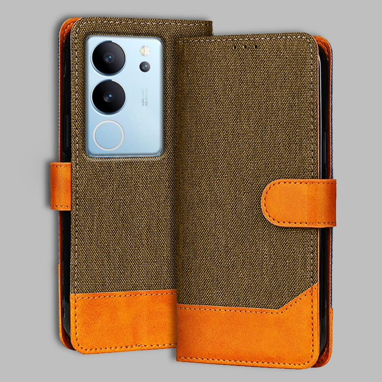 Denim & Leather Flip Case for Vivo V29 Pro | Stylish Protection - Dark Brown
