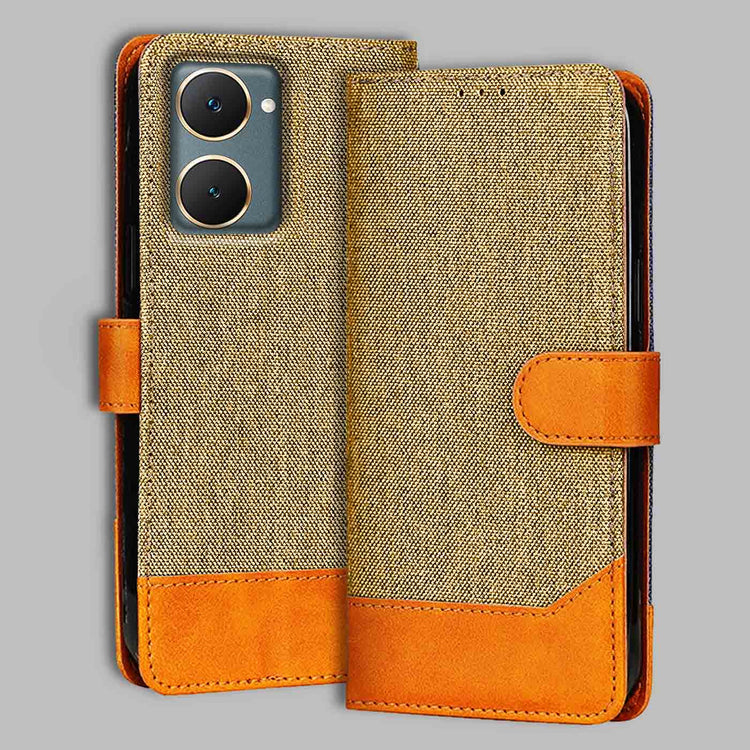 Denim & Leather Flip Case for Vivo Y18E | Stylish Protection - Light Brown