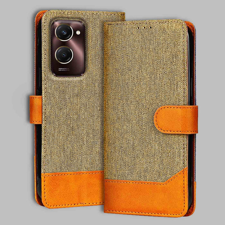 Denim & Leather Flip Case for Vivo Y28S 5G | Stylish Protection - Light Brown