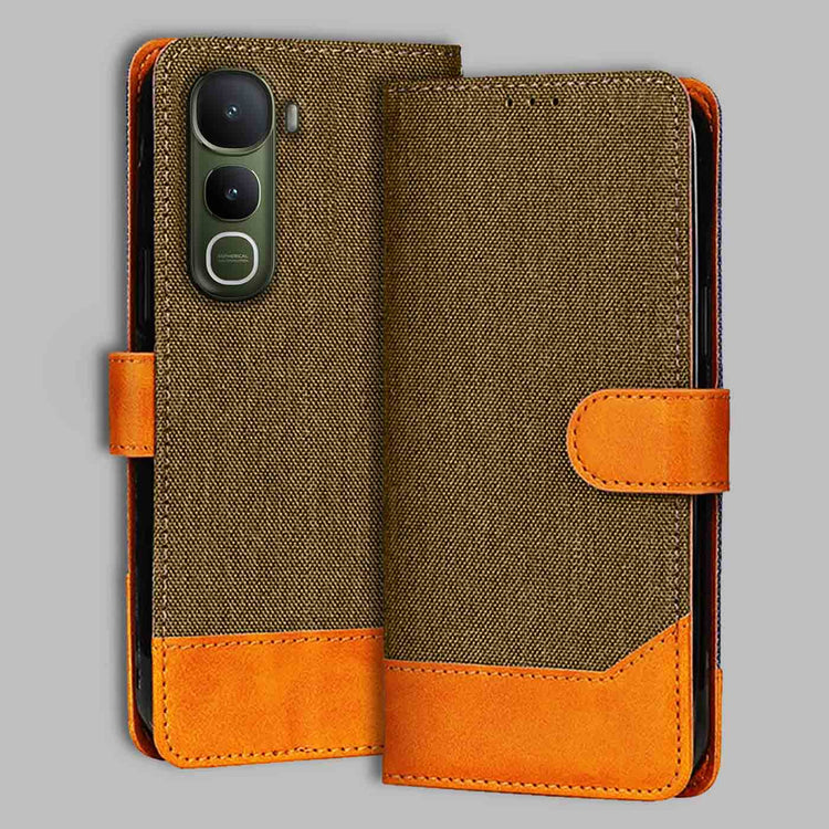 Denim & Leather Flip Case for Vivo Y400 5G | Stylish Protection - Dark Brown