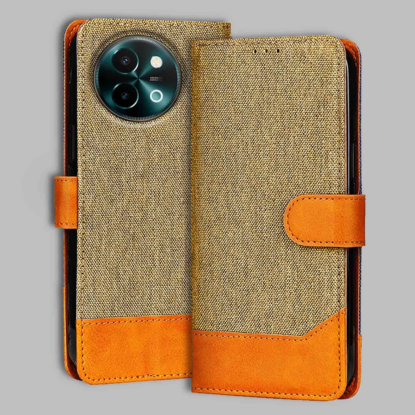 Denim & Leather Flip Case for Vivo Y58 5G | Stylish Protection - Light Brown