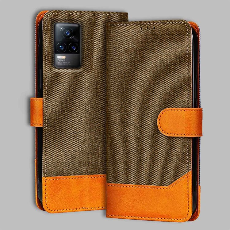 Denim & Leather Flip Case for Vivo Y73 5G | Stylish Protection - Dark Brown