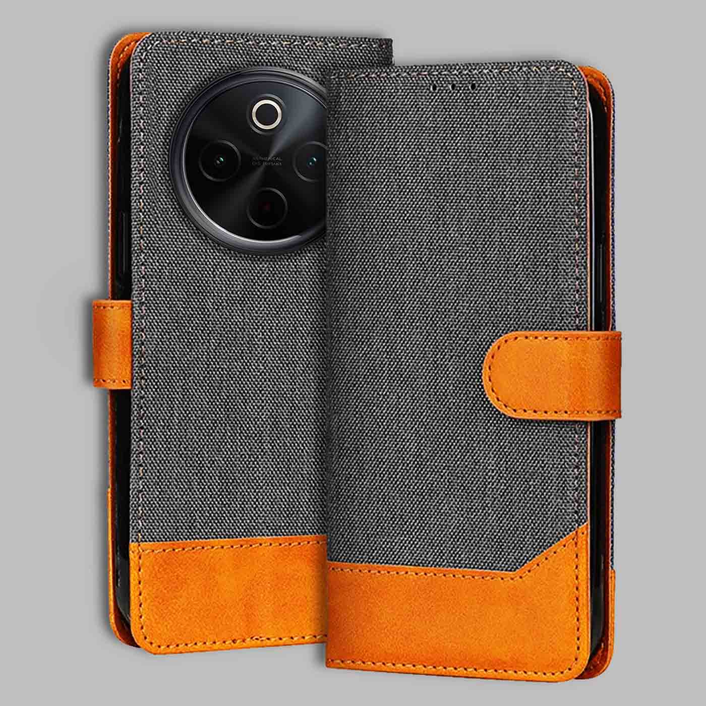 iQOO Z10 5G Dual Color Flip Cover | Denim & Leather - Grey