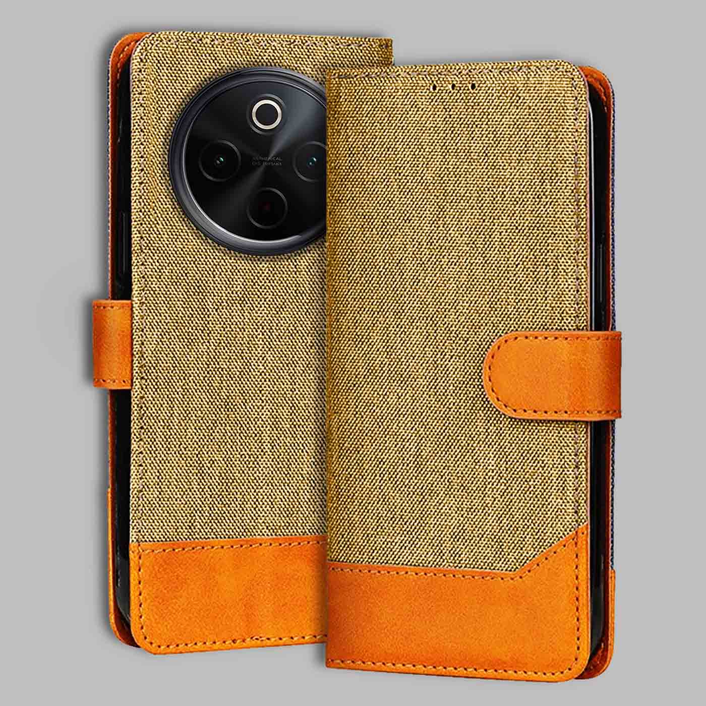 iQOO Z10 5G Dual-Tone Denim & Leather Flip Cover - Light Brown