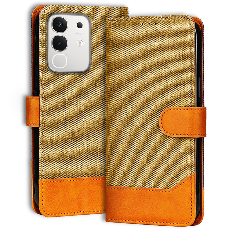 iQOO Z10X 5G Dual-Tone Denim & Leather Flip Cover - Light Brown