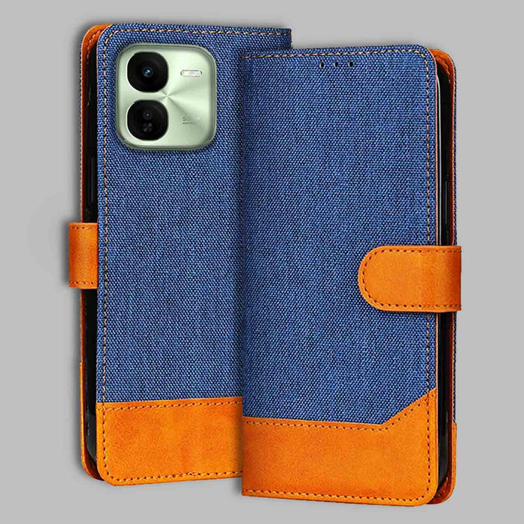 iQOO Z9X Denim Leather Flip Cover | Dual Color | Sleek & Durable - Blue