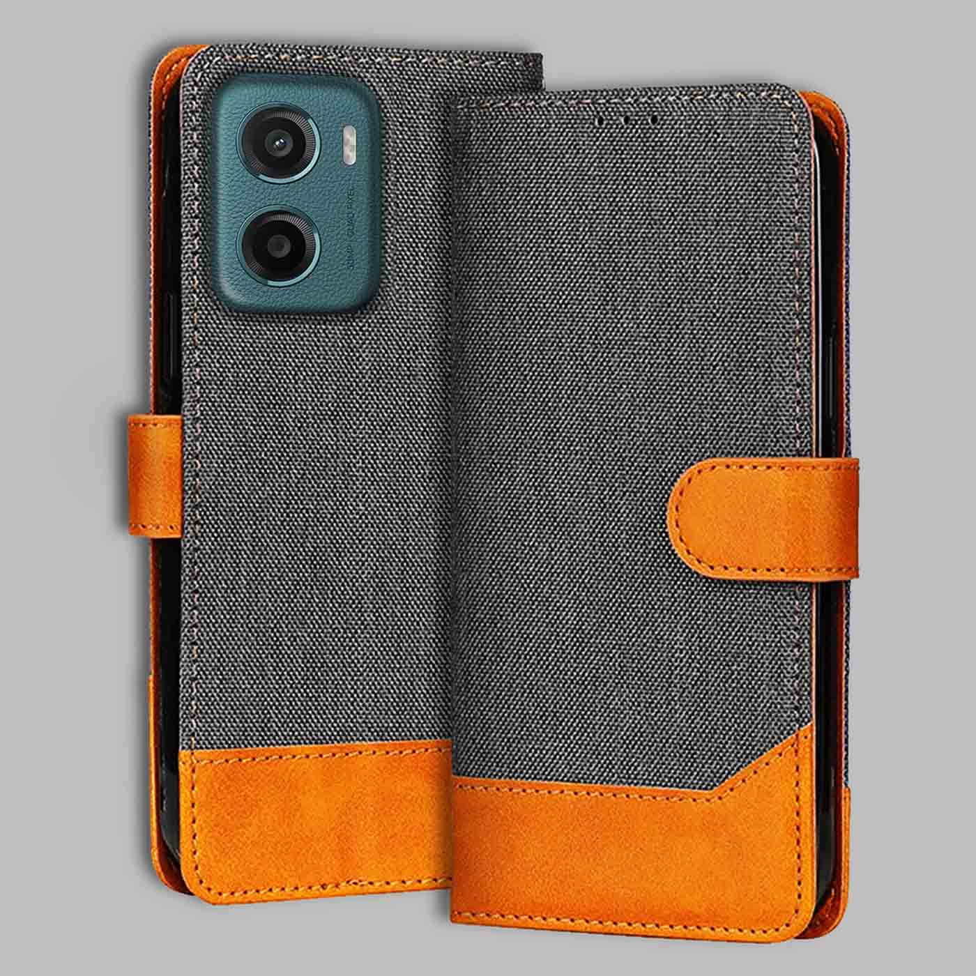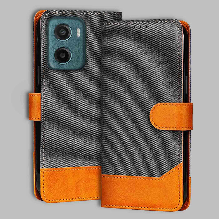 Moto G05 5G Dual Color Flip Cover | Denim & Leather - Grey