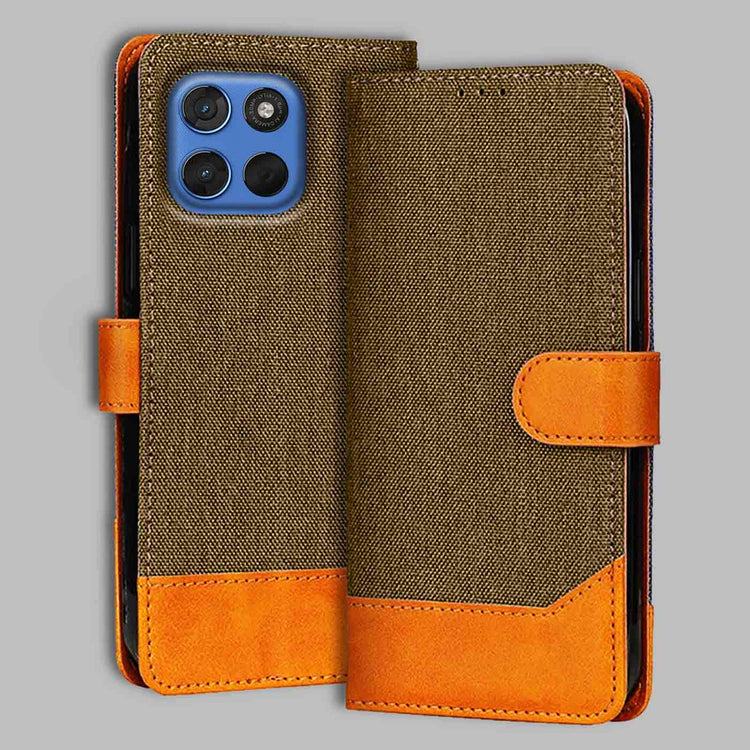 Moto G57 Power 5G Denim Leather Flip Cover | Dual Color | Sleek & Durable - Dark Brown