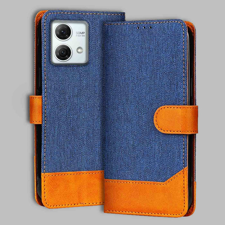 Moto G84 5G Denim Leather Flip Cover | Dual Color | Sleek & Durable - Blue