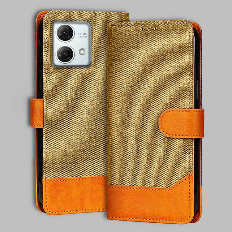 Moto G84 5G Dual-Tone Denim & Leather Flip Cover - Light Brown