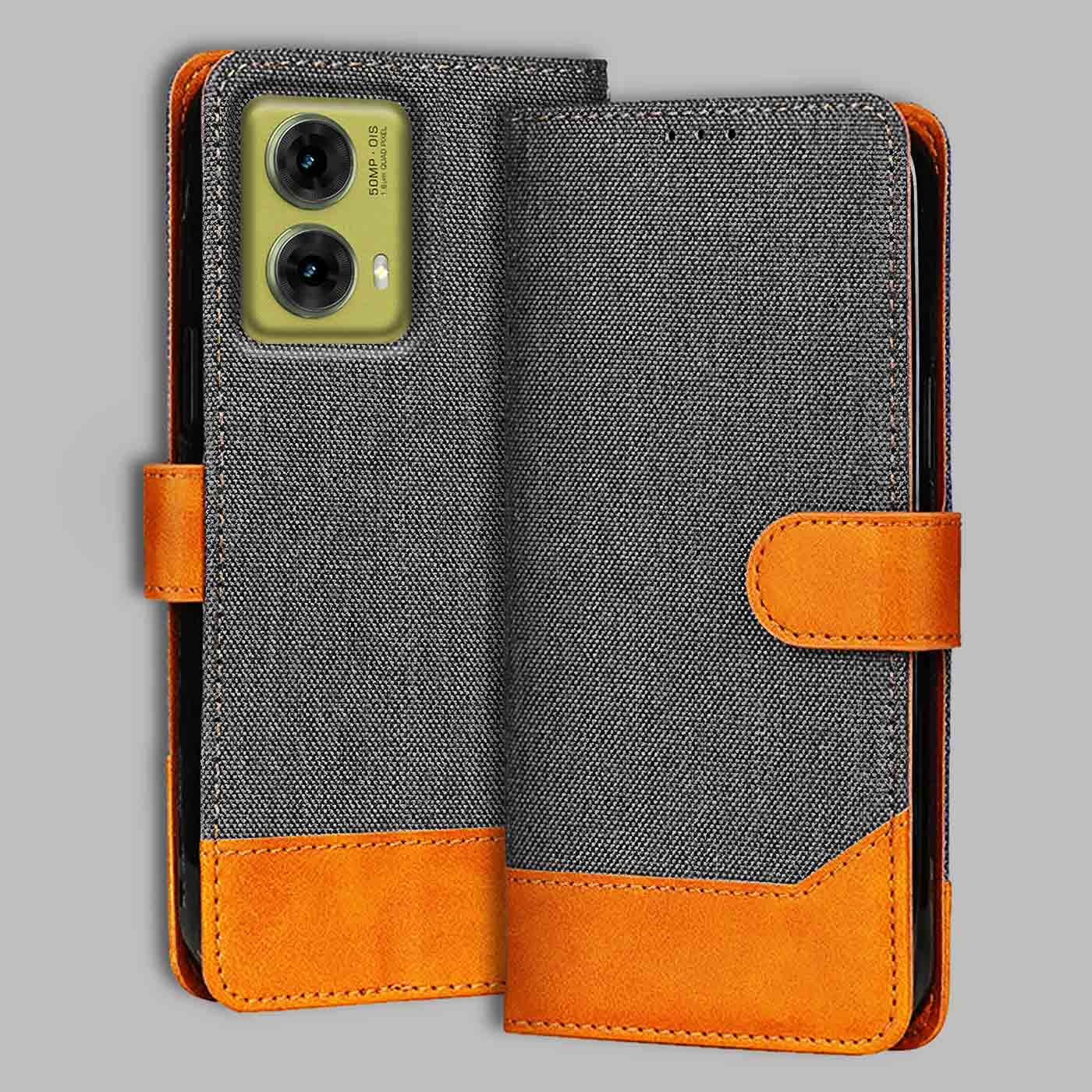 Moto G85 5G Dual Color Flip Cover | Denim & Leather - Grey