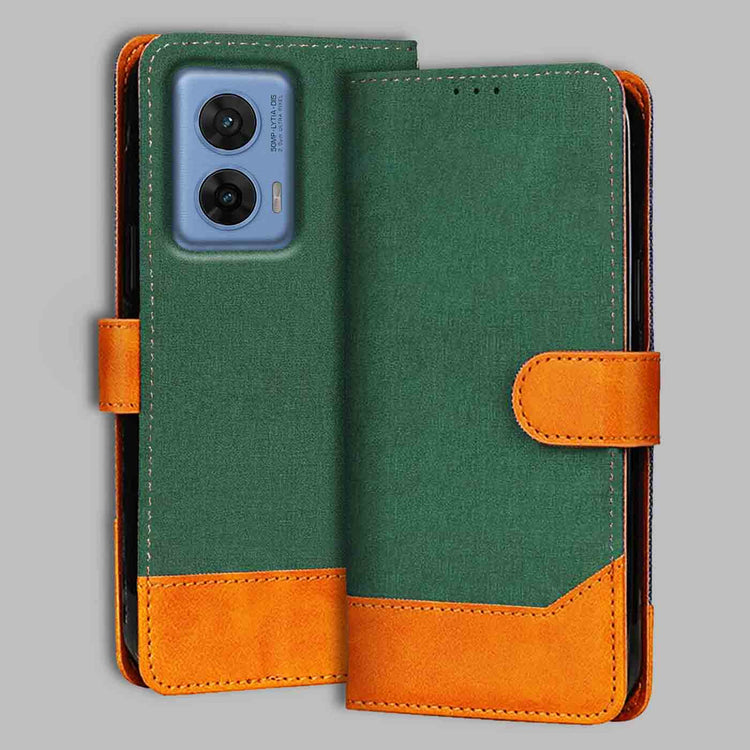 Moto G96 5G Canvas & Suede Flip Cover | Dual Color | Stylish & Durable - Green