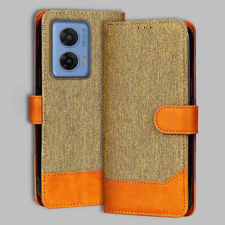 Moto G96 5G Dual-Tone Denim & Leather Flip Cover - Light Brown